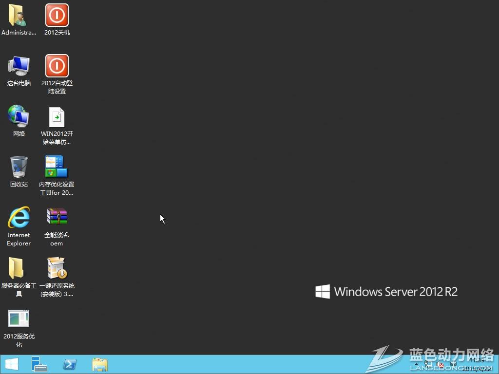 采用WIN2012 SERVER R2 with_update数据中心版 64位原版制作 最大支持128G内存 选择安装分区后无人值守安装(免安装KEY) 默认启动到传统桌面 默认Administrator帐户没有设置 请自行设置 数据执行保护设置为“仅为基本” 关闭IE增强安全配置 登录时不自动运行服务