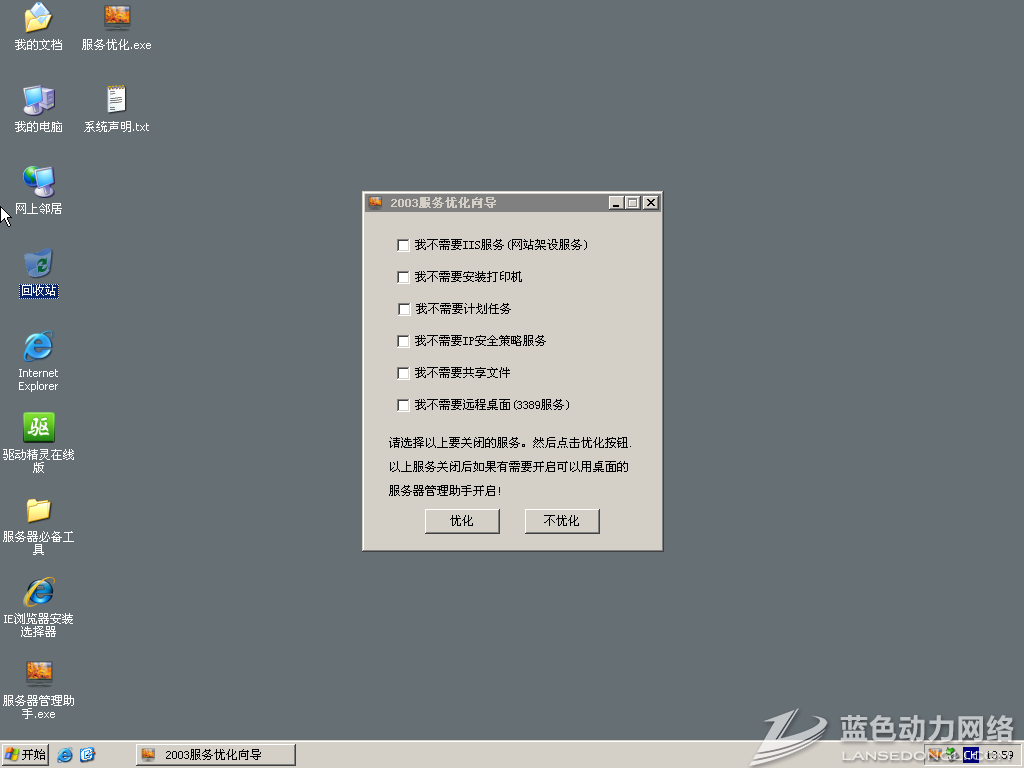 win2003网吧专用服务器C7-集成AHCI/RAID驱动稳定版 本版为安装版 集成AHCI驱动 如需要AHCI SAS RAID阵列模式下安装请下载 主要解决安装某些软件后进入桌面超慢的问题 取消关机加速 主要解决关机过快.容易引起软件数据丢失. 基本无任何精简。服务完整.保证网吧各种软