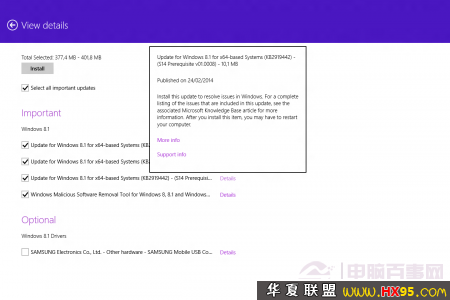 如果幸运的话,你应该能够看到“Update for Windows 8.1 for x64-based Systems (KB2919442) – (S14 Prerequisite v01.0008)”更新了。