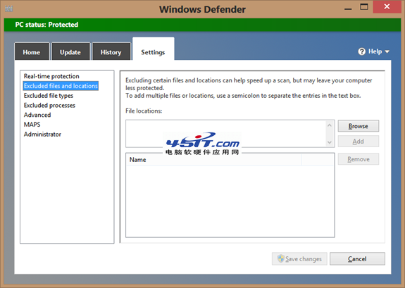 将某些文件或者文件夹设置成检查之外的内容也很简单:按一下开始按钮,返回到开始屏幕之后输入Defender就可以找到Windows Defender应用,点击设置选项卡,在左侧就有相对应的例外设置。可以设置某些文件,文件夹作为例外;也可以设置某类型或某进程是不检查的。当然,例外的设置是需要你在可以熟知你所拥有的程序是无害的。