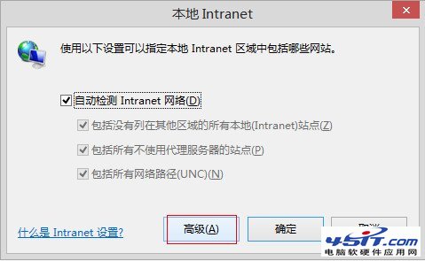 2、进入本地Internet之后,再单击【高级】按钮;