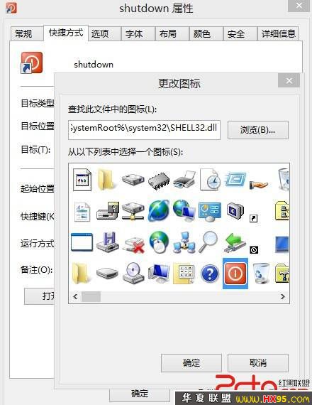 第三:更改图标,右键--属性--更改图标。建议选择一个关机图标,点确定。