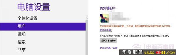 1.把鼠标放在屏幕的右上角弹出设置选项,然后选择更改电脑设置,找到用户选择Microsoft账户登录Win8系统。如果本身就是Microsoft账户登录的话可以直接略过,没注册账户的话,根据提示注册一个即可。