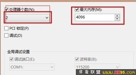之后我们再切换到“高级选项”卡下,然后根据自己CPU核心数量与真实内容容量上做正确的配置,由于小编是双核的CPU,4G的内存,这个以自己电脑的情况而定,如下图: