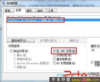 切换到“引导”选项卡,选中系列列表中的“Windows 7”,在下方“无GUI引导”一项的前面打勾。