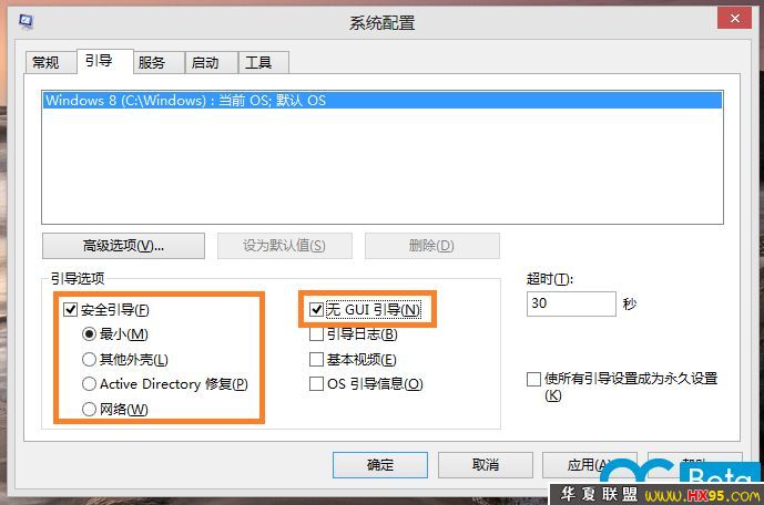 勾选【安全引导】→【最小】