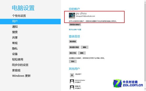 首先,进入Win8系统“电脑设置”,我们要用微软的Microsoft账户登录Win8系统。如果安装系统时曾经注册过,那么登录即可;如果尚未注册,那么可以登录Outlook.com网站进行注册。