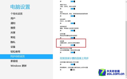 这样,Win8系统IE10浏览器的收藏夹与历史记录等信息就会同步云端。而通过每个人独有的微软账户,我们就能在任何一台Win8设备上获得相同的设置与浏览信息了。