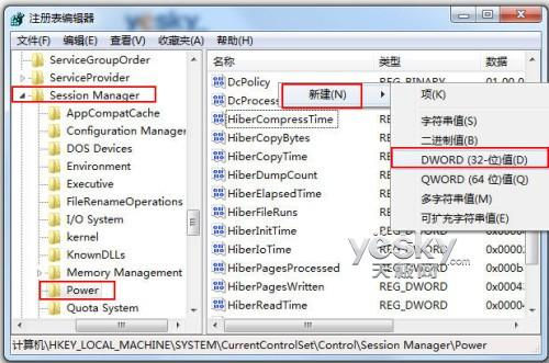 注册表简单设置 在Win7桌面左下角开始菜单处的搜索框中输入“regedit”然后回车打开注册表编辑器。 在Win7注册表中找到“HKEY_LOCAL_MACHINESYSTEMCurrentControlSetControlSessionManagerPower”这一项,然后在右侧窗口中的空白处点击鼠标右键,新建一个“DWORD32位"的值”,命名为“AwayModeEnabled”,后双击打开,将其键值设置为数字“1”,点确定返回,关闭注册表编辑器。