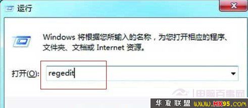 步骤一:在点击开始菜单后,选择菜单中的“运行”也可以按组合快捷键:Win+R键打开运行对话框。然后在运行对话框的输入框内键入regedit,回车即可打开注册表编辑器,如下图。