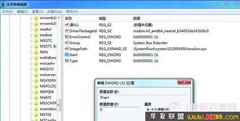 步骤二:打开注册表编辑器之后,进入“HKEY_LOCAL_MACHINESystemCurrentControlSetServicesMsahci”键值。在右边窗口中双击名称为“Start”的项目,会弹出一个对话框,将默认的参数由3更改为0。点击“确定”并且保存之后,重新启动电脑。