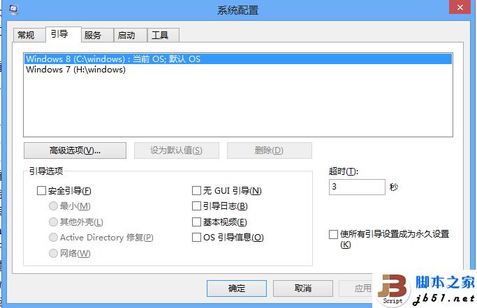 B情况,相对好解决的多,只要把win8设成默认启动项,然后和A情况一样关掉win8系统快速启动就可以了