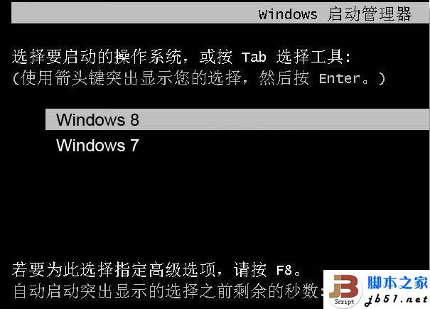 开机后win8是默认系统,如果选择win7,势必会重启再进入win7