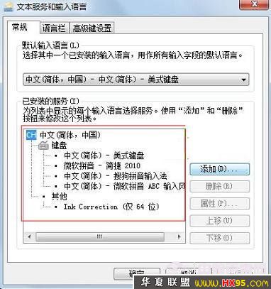 四、然后在顶部选择默认输入语言栏下选择一款输入法做为默认的,将下面的其他的输入法可以删除,如下图: