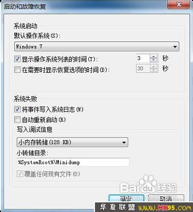 弹出【系统属性】对话框,选择【高级】选项卡,在【启动和故障恢复】一栏中单击【设置】按钮。弹出的【启动和故障恢复】窗口,在【系统失败】一栏中选择【自动重新启动】复选框,单击【确定】按钮。重新启动电脑,即可排除故障。