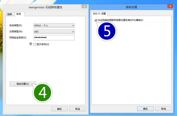 解决Win8.1无法连接WiFi或者WiFi掉线的方法:WLAN状态 - 无线属性 - 安全 - 高级设置 - 把为此网络启用联邦信息处理标准(FIPS)兼容(F) 勾选上。