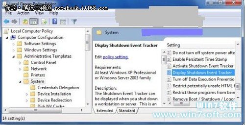 win7系统的用户现如今是越来越多,但是在使用win7过程当中都会遇到这样或那样的问题。正如有些使用win7的用户就会遇到不正常关机的情况,但是能不能有什么“证据”能够让用户知道是什么导致的呢?有的,这点是可以做到的。Shut down Event Tracker可以帮我们完成。只不过是windows7把它屏蔽了。