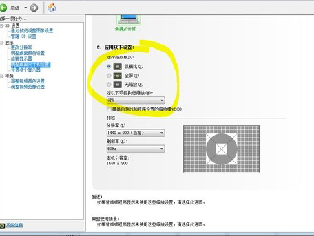 3、选中“使用NVIDIA缩放功能”