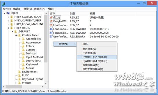 定位到 HKEY_USERS.DEFAULTControl PanelDesktop ,新建一个 DWORD 值,命名为 LogPixels ,赋值为刚才你复制的当前用户的 LogPixels 值(比如我的是78)。