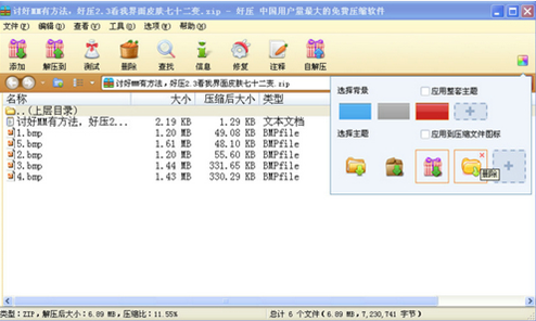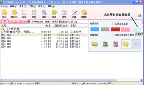 第三步:选定自己喜欢的背景后,只要单击喜欢的背景就可以为好压软件自动更换上喜欢的新背景。
