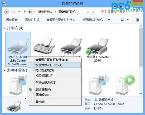 在需要设置成为默认的打印机上面点击鼠标右键,在弹出菜单中选择“设为默认打印机”,只有这个打印机的左下角就会多出一个绿色的对勾图标,这样就成功了!