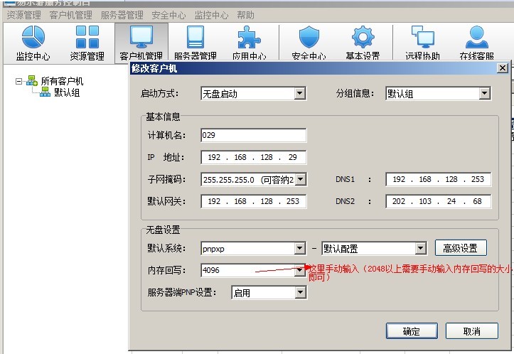 大内存无盘客户机实施方案如下: