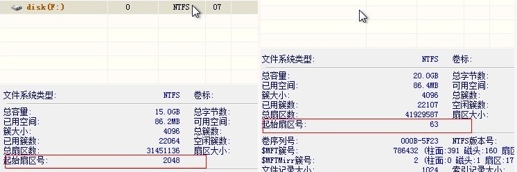 卷模式和原来的分区模式起始的扇区号不一样。在2003系统中还是老式的分区模式,所以在服务器上挂载的时候是不识别的。