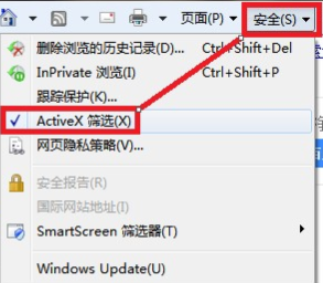 取消IE浏览器--安全中应用了activex筛选 勾选如下图所示: