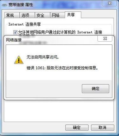 最近有朋友在windows7系统下启动网络共享的时候,无法正常启用共享访问,系统提示错误1061 ,即服务无法在此时接受控制信息,这是怎么回事呢?该怎么办呢?其实出现这个问题的主要原因是系统中了蠕虫病毒的危害才引起的,具体情况看看下面的介绍吧。
