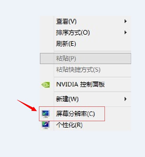 2. 在桌面空白处,按鼠标右键看到“屏幕分辨率”,选择;