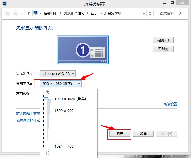 3. 如图操作,选择适合你的屏幕分辨率;