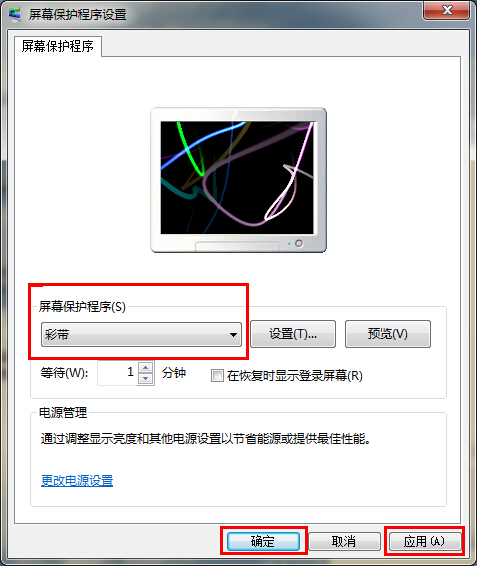 2.选择右下角的“屏幕保护程序”,进入屏幕保护程序设置。接着选择适合自己的屏幕保护程序,点击“应用”,选择“确定”。如下图所示: