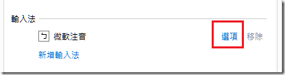 3. 点选【微软注音】旁的【选项】