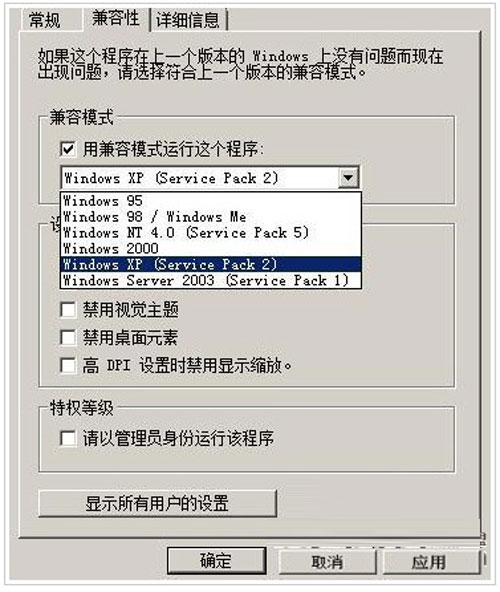 接着我们还需要取消兼容性关卡限制;在进行这种设置操作时,我们可以先将目标设备的驱动安装光盘正确放置到Windows Server 2008系统的物理光驱中,之后打开驱动安装光盘的根目录窗口,从中找到类似“setup.exe”、“install.exe”之类的可执行文件,并用鼠标右键单击目标文件,从弹出的快捷菜单中执行“属性”命令,打开目标可执行文件的属性设置对话框;单击该设置对话框的“兼容性”标签,打开如图2所示的标签设置页面,在该设置页面的“兼容模式”设置项处,选中“用兼容模式运行这个程序”选项,同时从对应选项的下拉列表中选中“Windows XP(Service Pack2)”选项或其他相关选项;下面,我们还需要在图2所示标签设置页面的“特权等级”设置项处,选中“请以管理员身份运行该程序”选项,最后单击“确定”按钮保存好上述各项设置操作,如此一来目标设备的驱动程序就能顺利地在Windows Server 2008系统中成功地安装好了。