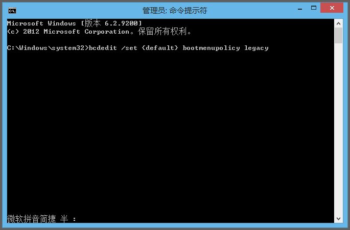 3、回车确定,执行完该操作后重启计算机按F8键即可看到传统的高级启动选项。