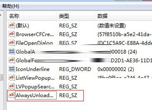 3、在右侧新建名为AlwaysUnloadDLL的项,开启清除内存不被使用的动态链接文件此项功能。