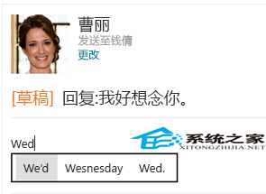 在使用触摸键盘时,Windows 可能提供文本建议,以帮助你更快地输入单词或者纠正拼写错误。 若要插入某个建议,请点击该建议,如果该建议突出显示,则只需按空格键。 若要切换突出显示的单词,请轻扫空格键左侧或右侧。
