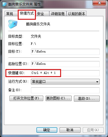2.选择属性页面的快捷方式,在快捷键后输入框里输入你想要的快捷键