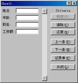 随便说一下,数据记录单是一种对话框,利用它可以很方便地在数据清单中输入或显示一行完整的信息或记录。当然了,它突出的用途还是查找和删除记录。当使用数据记录单向新的数据清单中添加记录时,数据清单每一列的顶部必须具有列标。中文Excel 2000也将使用这些列标创建记录单上的字段。