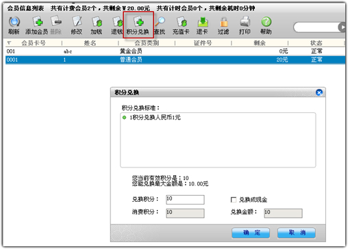 万象网管2008中的会员在冲值后,会自动累积与充值金额相等的积分,即每充值1元获得1个积分。此积分可用于兑换为上机费用或现金,兑换的比率和标准由网吧定义;