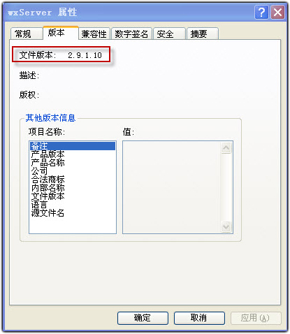 通常有版本更新时,在发布的更新内容或者更新公告上都可以看到最新版本的具体版本号,是否需要升级首先要查看您所使用的软件的具体版本号,打开您服务端的安装目录,找到Wxserver.exe这个文件,右键点击,选择属性: