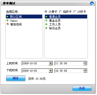 该功能可以在费率设置好但不保存的情况下,直接点测试进行测试,测试当前设置的费率是否有效。测试没有问题后,再点确定保存。避免设置出错,造成当前正在上机的用户余额发生变化。