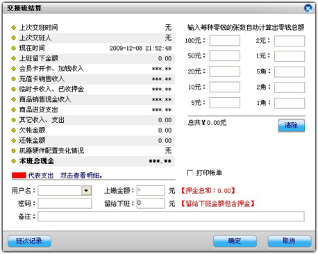 勾选上后当操作员交班时,上缴金额将以*号显示。