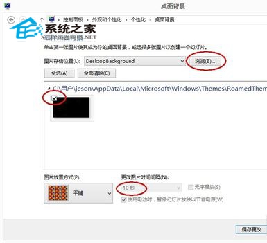 下图是电脑桌面设置窗口,如图,大家可以点击浏览,找到想要设置成桌面的图片所在的位置,然后下方会列出此位置所有的图片,勾选上你想要的图片,点击确定即可。勾选了多个图片的话,下方还有更换壁纸的时间,可以设置为1分钟或10分钟,打破你沉寂的电脑桌面吧!