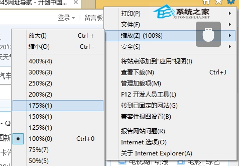 这样就完成了Windows 8下IE10浏览器页面显示比例的设置了。学会了这个设置后,我们可以自行设定页面的显示比例大小,从而对页面进行缩放,以达到最佳浏览效果。