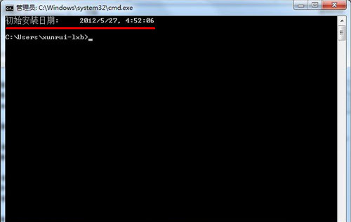 3、此时我们就可以看到在dos管理员窗口中显示出了我们的计算机初始安装日期,如下图所示: