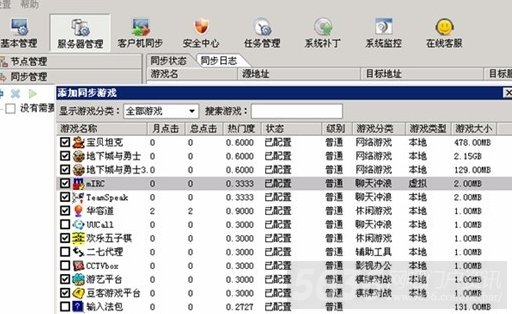 或者我们也可以手动选择游戏同步,通过“服务器管理同步管理”功能,点击“+”按钮手动选择添加需要服务器同步的游戏。
