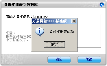 如图,输入备注信息后点击确定即可开始备份,备份成功后会提示您: