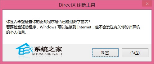 之后会弹出一个Directx诊断工具提示框,我们直接点击“是”,如下图所示。
