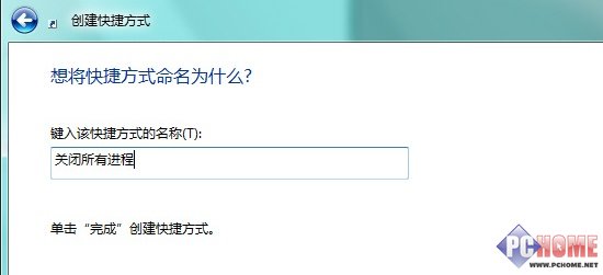 然后【下一步】给这个快捷方式起名,比如:关闭所有进程。